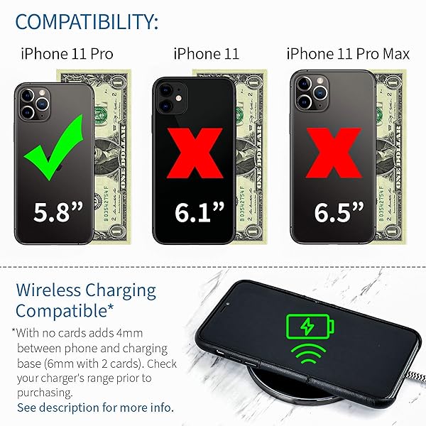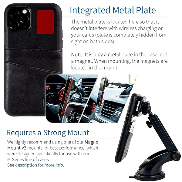 - Dockem Wallet Case for iPhone 11 Pro: Built-in Metal Plate for Magnetic Mounting & 2 Credit Card Holders: M2 Exec Premium Synthetic Leather (5.8, Black): reliable performance and quality- For the iPhone 11 Pro: This case features a hard shell- CONVENIENCE: 2 separate card slots for carrying your 2- MAGNETIC MOUNTING: Integrated metal plate provides- WIRELESS CHARGING (Qi Charging): We recommend removing