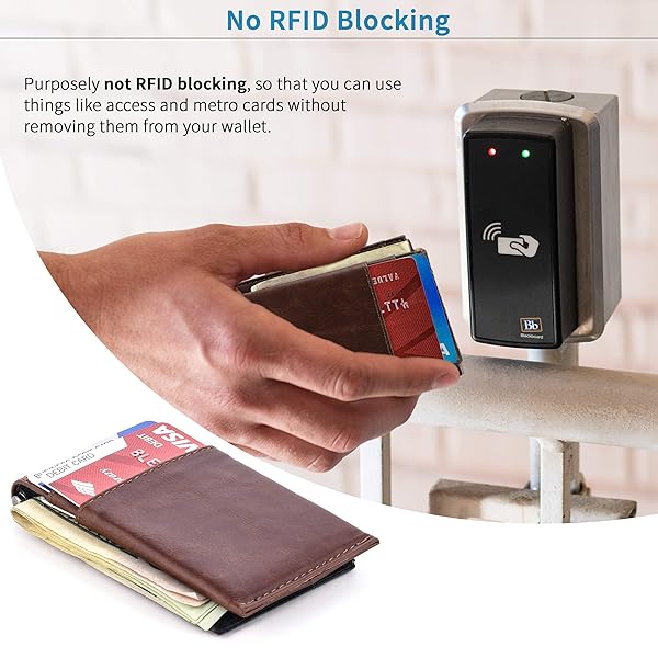 - Dockem The Latcher Minimalist Wallet & Card Case Companion (Genuine Leather) offers reliable performance and quality- Carries cash with ease, but the cash clip can easily be removed to step up the minimalism- Purposely not RFID blocking, so that you can use things like access and metro cards without removing them from your wallet. RFID blocking is over-rated marketing tactics that gets in your way more than it actually protects you from any real threats