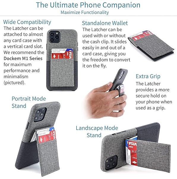 - Dockem The Latcher and The Rd: The Modular Minimalist Capable Wallet(s) - (Synthetic Canvas Leather) offers reliable performance and quality- Consists of 3 pieces that can be used individually or combined in various combinations to match your everyday needs. Carries cash with ease, but the cash clip can easily be removed. Transfer the cash to the Cash Corral to keep things tidy
