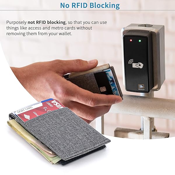 - Dockem The Latcher Minimalist Wallet & Card Case Companion (Synthetic Canvas Leather) offers reliable performance and quality- Carries cash with ease, but the cash clip can easily be removed to step up the minimalism- Purposely not RFID blocking, so that you can use things like access and metro cards without removing them from your wallet. RFID blocking is over-rated marketing tactics that gets in your way more than it actually protects you from any real threats
