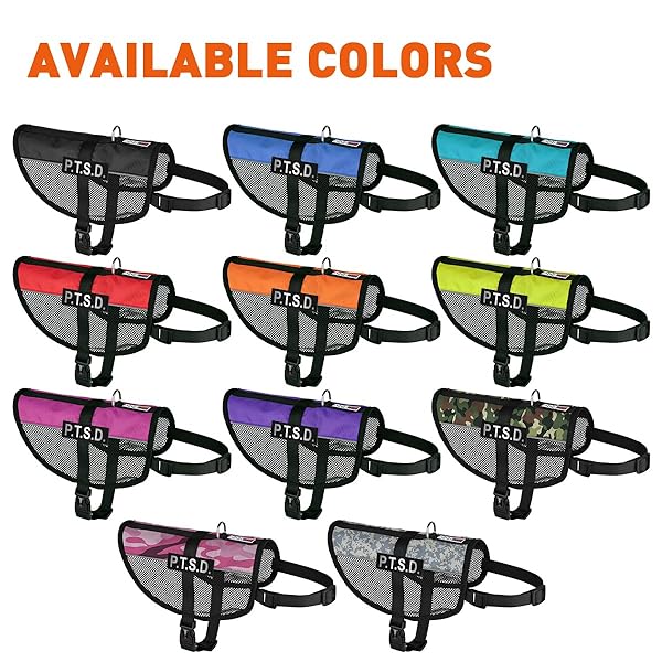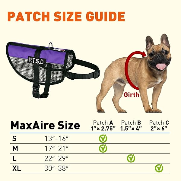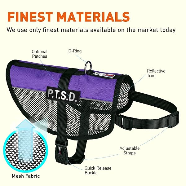 - Dogline MaxAire Mesh Vest for Dogs and 2 Removable PTSD Patches, 17"-21", Purple offers reliable performance and quality- One of the lightest multi-purpose animal vests on the market; ideal for warm climates- Removable/Interchangeable P.T.S.D. patches included for both sides of the vest- Available in 4 sizes and 8 colors- Adjustable front and underbelly straps; easy to take off with quick release buckle