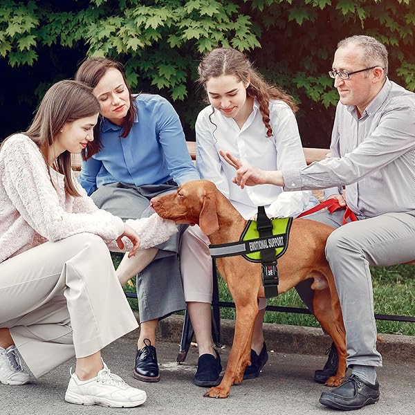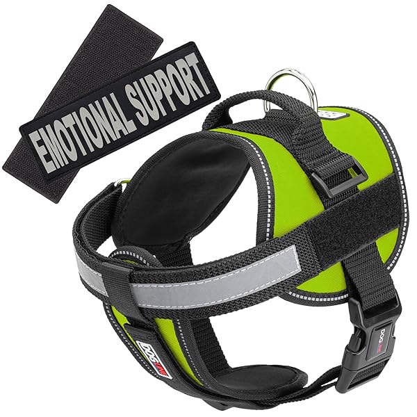 - Dogline Vest Harness for Dogs and 2 Removable Emotional Support Patches, X-Large/36 to 46", Green offers reliable performance and quality- Made of durable, water resistant materials; lined with padded neoprene for comfort; assembled and ready to use- Removable/Interchangeable EMOTIONAL SUPPORT patches included for both sides of the vest- Adjustable front and underbelly straps; removable chest plate; quick release buckle