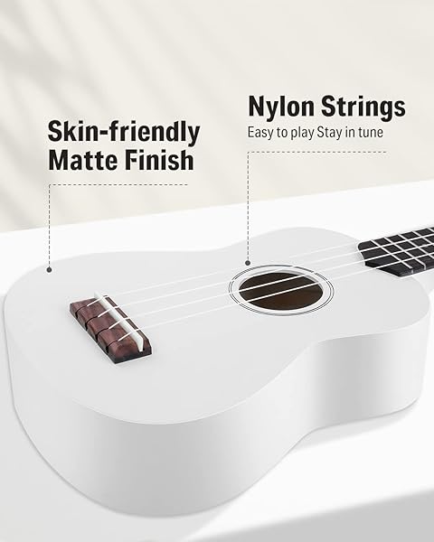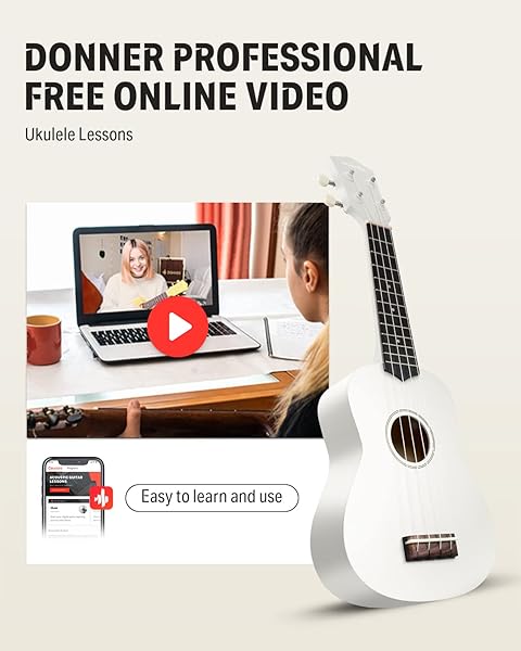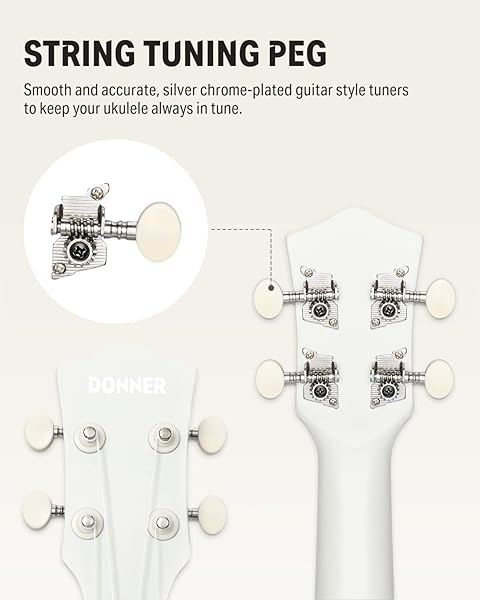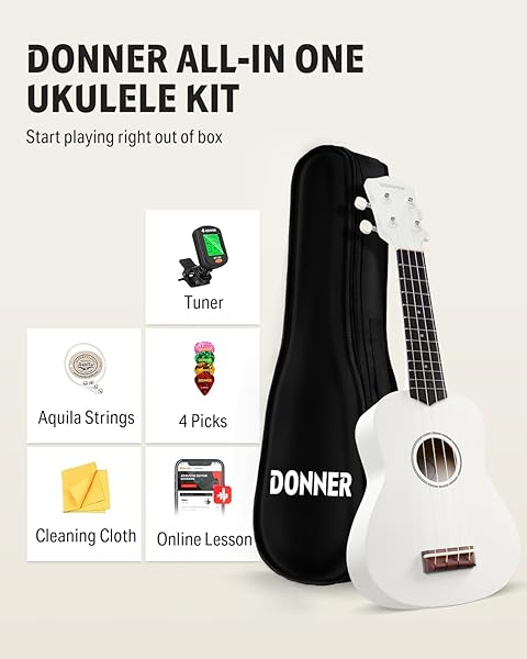- Donner Soprano Ukulele for Beginner 21 Inch Matte Ukulele Beginner Kit with Bag Strap Tuner Strings Picks Cloth, Free Online Lessons (White) with reliable performance and quality- [Warm and Bright Sound] Based on traditional Spanish craftsmanship, Donners soprano ukulele features a high-quality basswood body with a warm, rich and bright sound. High-density bone nut and saddle combined with 4 soft and flexible nylon strings create more powerful resonance and detailed expressions.</