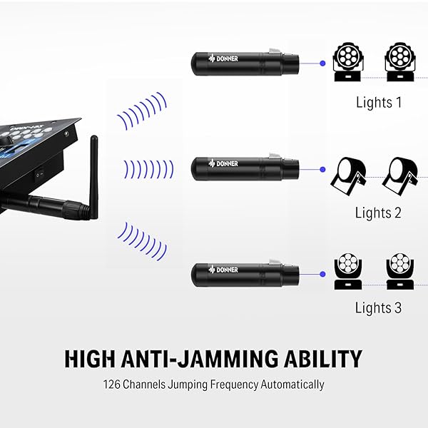 - Donner DMX512 Wireless Controller Dfi DJ 2.4G DMX Wireless 5 Receivers Short Version with Light Dome & 1 Transmitter Stage Lighting Control for LED Stage Disco Party Bar Lighting 6 PCS Black with reliable performance and quality- APPLICATION: The DMX512 wireless controller is good for stage lighting control. One transmitter can control many receivers. With tricolor LED displaying indicators, the wireless DMX512 can be used in all DMX lamps. Without wires, it's the perfect way to g