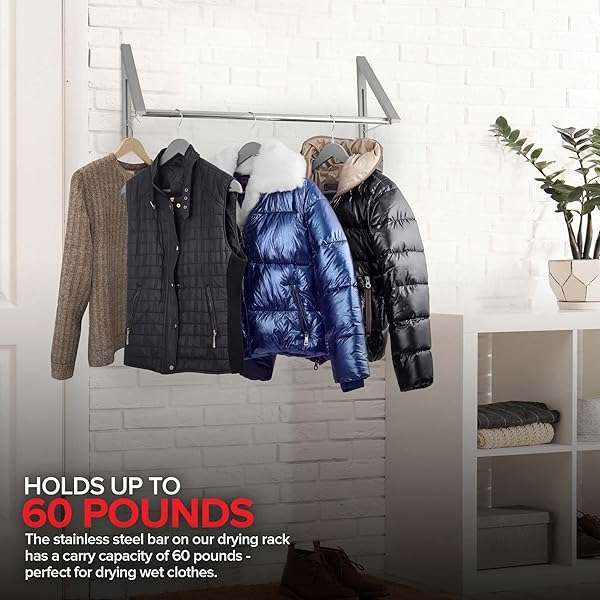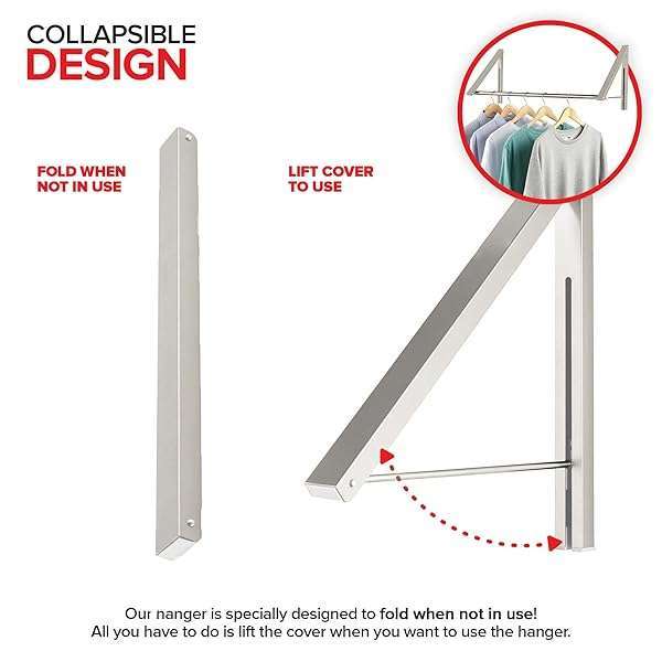 - Double Foldable Clothing Rack w/ Extension Rod, Wall-Mounted Retractable Clothes Hanger for Laundry Dryer Room, Hanging Drying Rod, Small Collapsible Folding Garment Racks, Dorm Accessories (Chrome) offers reliable performance and quality- Wall Mounted Clothes Rack: Maximize your closet space wherever needed. Our small dryer hanger is compact, durable, and easy to install. Hanger: 11.625 L x 1.25 W x 12.5 H, and 0.75 thick. Rod: 31.5 L x 0.75 Dia. Hardware included