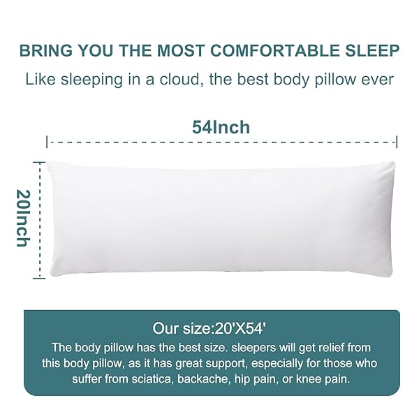 - DOWNCOOL Large Body Pillow Insert- Breathable Full Body Pillow for Side Sleeper - Soft Long Bed Pillow for Adults - 20 x 54 inch offers reliable performance and quality- Ultra premium full body pillow insert by DOWNCOOL is Extra Breathable and soft with 100% polyester cover- Durability and avoids piling- Large and soft bed pillow insert- keeps its shape and medium firm support. Ideal for daily use, the materials and construction for long-lasting comfort