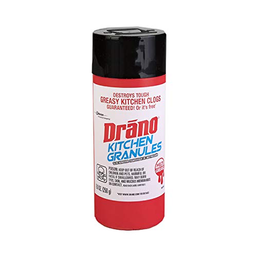 * Drano KITCHN Gran 8.8OZ: container size: 8.8 oz * Safe for Garbage Disposals: No * Specifically designed to destroy tough * Greasy kitchen clogs * Unclogs kitchen sinks