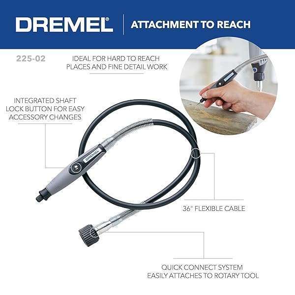 - Dremel Flex Shaft Rotary Tool Attachment with Comfort Grip and 36 Long Cable - Engraver, Polisher, and Mini Sander- Ideal for Detail Metal Engraving, Wood Carving, and Jewelry Polishing, 225-02: reliable performance and quality- TAKE YOUR ENGRAVING, ETCHING, SANDING, AND CARVING TO- SMALL HANDPIECE PROVIDES SUPERIOR CONTROL, LESS- EXTREME PRECISION FOR FINE AND DETAIL WORK- FAST ACCESSORY CHANGE AND QUICK CONNECT TO ATTACH THE