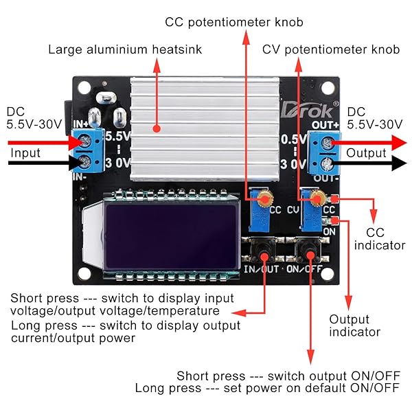 - DROK Boost Buck Converter, DC 5.5-30V to 0.5-30V 5V 12V 24V Output Adjustable Power Supply Regulator Module, 4A 35W High Power Voltage Step Up Down Converter Board with Case LCD Display offers reliable performance and quality