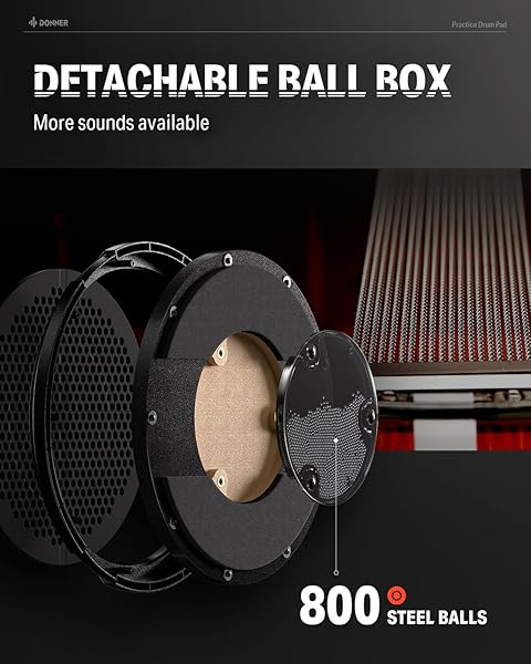 - Drum Practice Pad 12 Inches, Donner Quiet Drum Pad with Removable Snare Simulation Built-in 800 Steel Balls, Drum Sticks, 40 Standard Rudiments(Black) with reliable performance and quality- [Simulated Snare Sound] This drum pad is equipped with a detachable snare simulator containing 800 steel balls which simulates the sound of a real snare drum and makes it more immersive- [Chop Builder] Donner Drum Practice Pad is a highly long-lasting practice pad. It offers an authentic