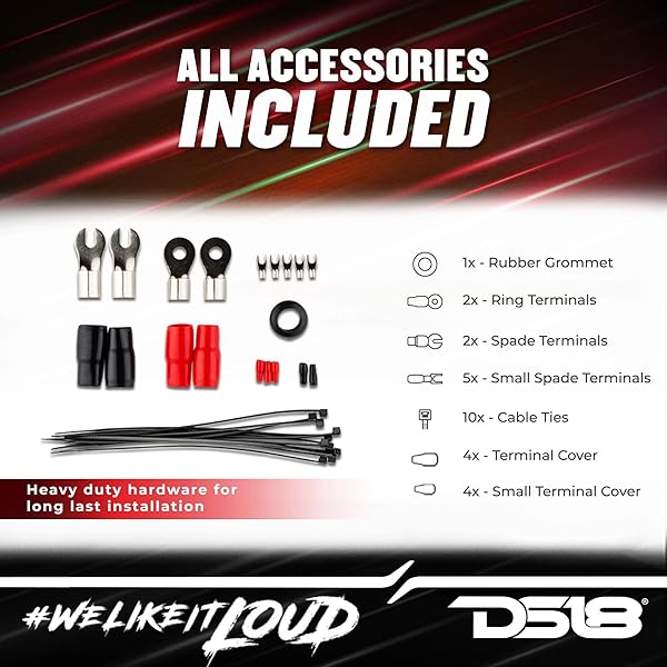- DS18 AMPKIT0 0 Gauge CCA Complete Amp Wiring Kit - Amplifier Install Wiring 1/0 Ga Amp Kit Pro Installation Cables Up to 3500 Watts with ANL Fuse Holder 250A offers reliable performance and quality- INNOVATIVE - Continuing our efforts to give users complete creative control in the construction of their ingenious sound systems, the team at DS18 launches the AMPKIT0