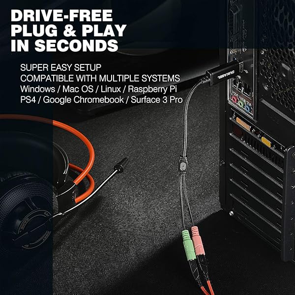 DuKabel USB Audio Adapter: 3.5mm TRS AUX Sound Card for Headsets & Microphones