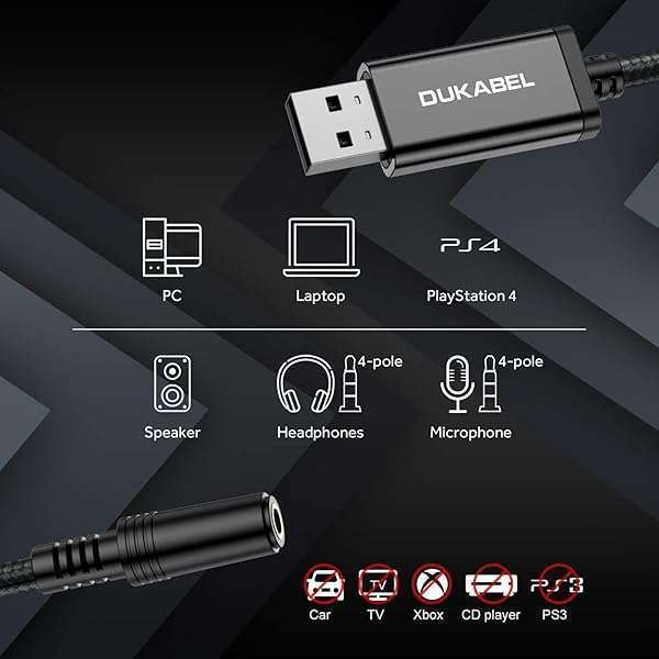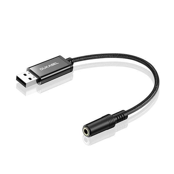 DUKABEL USB to 3.5mm Audio Adapter - TRRS Mic-Supported USB to Aux Cable for PC, PS4, PS5 & More (9.8 inch)