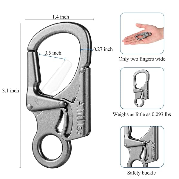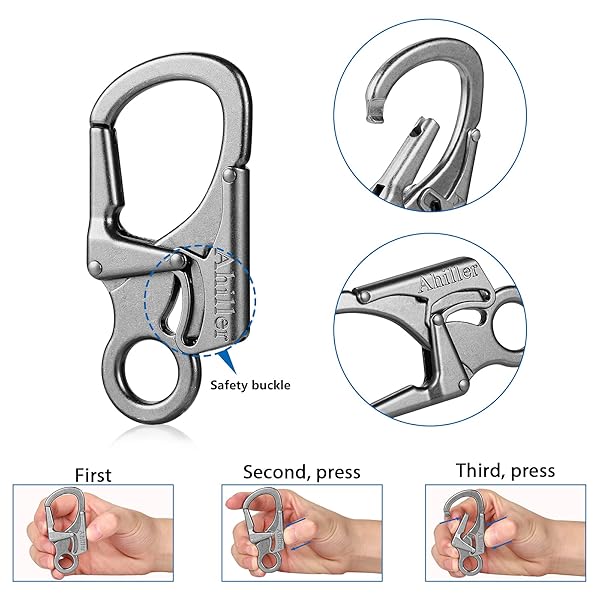 * Ahiller Carabiner Clip, Double Anti-Misopening Locking Design, 3" Zinc Alloy Heavy Keychain for Outdoor Camping Hiking, Key Ring Clip (Gunmetal-1P): double anti-misopening design: carabiner clip is 3.1*1.4 inch * And the opening diameter is 0.5 inch * These carabiners can be operated easily and smoothly with one hand * To prevent accidental slippage due to collision * Press the switch at the other end to unlock the caribeener clips.We own the exclusive design patent for this product