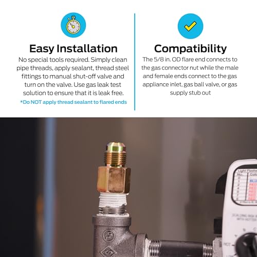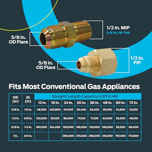 * Eastman Gas Fitting Adapter, 1/2 in FIP x 15/16 in OD Flare, Zinc-Plated Steel, 65709B: the eastman gas fitting adapter provides a dependable solution for gas line transitions in residential applications * Designed with a 1/2 in FIP connection and a 15/16 in OD flare outlet (5/8 in OD = 15/16 * 16 thread) * This adapter is ideal for connecting a gas connector to an appliance inlet * Gas ball valve