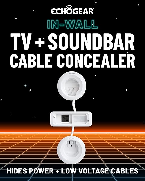 - ECHOGEAR in Wall Cable Management Kit for TV & Soundbar - Cord Concealer & Power Kit - Powers Devices & Hides All Cables - Comes with Circle Saw Drilling Attachment & Drywall Hand Saw offers reliable performance and quality- Hide all the power, video, and sound cables from your TV and soundbar setup with this in-wall DIY cable management kit. In-wall rated power cables keep your gear safe and house up to code