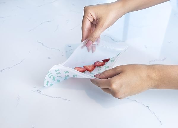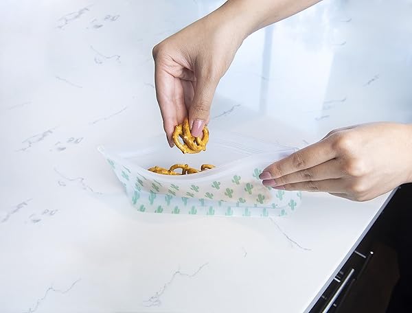 * EcoLogical Reusable Snack Bags, Sustainable Kitchen Accessory, Zero-Waste Lunch Set, 4 pack, Printed: ecological reusable snack bags feature a cute design yet are transparent so you always know what's in them * They come in a 4 pack * Plenty of bags for your storage needs * They are made from food-safe * PVC & BPA-free material