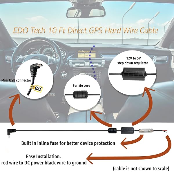 EDO Tech Car Charger Power Cord Hardwire Kit for Garmin Nuvi DriveSmart Series and 2495 2497 2539 2555 2557 2589 2597 2598 2599 GPS