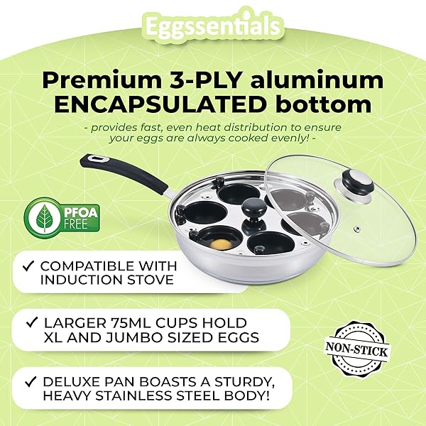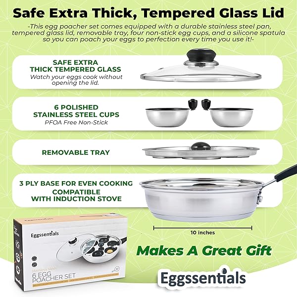 - Eggssentials Egg Poacher Pan Nonstick Poached Egg Maker, Stainless Steel Egg Poaching Pan, Poached Eggs Cooker Food Grade Safe PFOA Free with Spatula, Egg Poachers Cookware offers reliable performance and quality