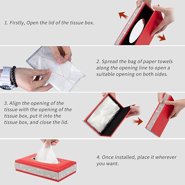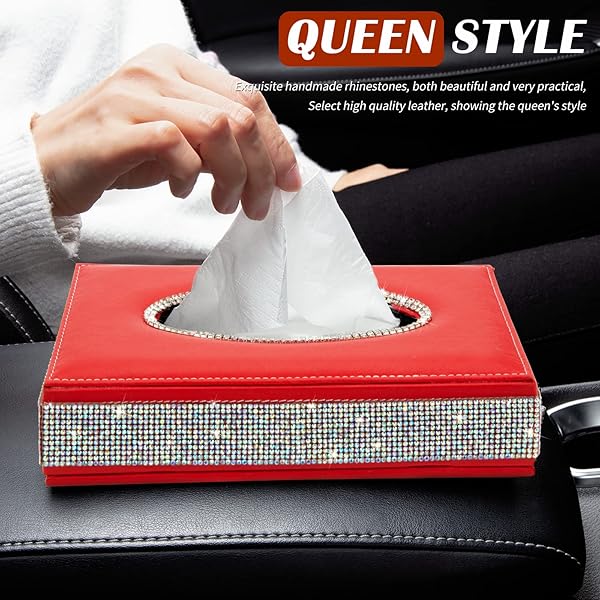 - EING Rectangle Tissue Box Cover - Decorative Tissue Holder was Finished in Bling Crystal Diamonds and Made by Premium Leather,Perfect for Car,Office,Home - Red offers reliable performance and quality- HIGH-GRADE MATERIAL: Surface is made of high quality PU leather and Elegant Bling Crystal Rhinestones,flannelette cloth inside.Stable structure and easy to clean