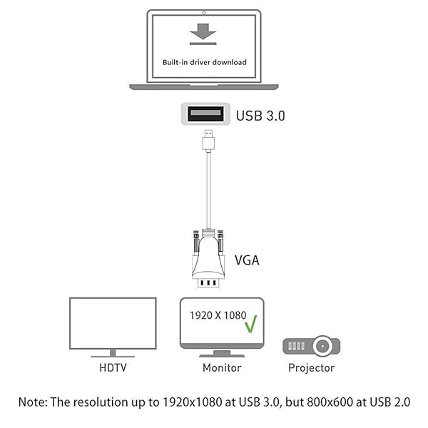 * USB to VGA Adapter Cable 16FT/5M Compatible with Mac OS Windows XP/Vista/10/8/7, USB 3.0 to VGA Male 1080P Monitor Display Video Adapter/Converter Cord. (16FT): usb to vga adapter cableconnects a usb-enabled devices (such as laptop * Desktop) to a VGA-enabled devices( such as monitor * Projector * A cost-saving double-monitor or dual-display option * No additional USB-VGA adapter or VGA cables required