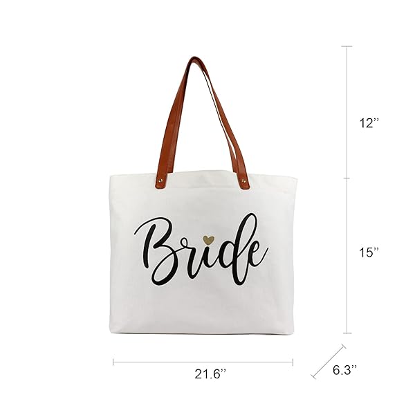 * Lamyba Bride Bag with Makeup Bag, Mrs Tote Bag, Bride to be Gifts/Bridal Shower Gifts for Bride, White: large roomy: approx 21"x 15"x 5.5 "with vegan leather handle * Carry all things for your vacation * Makeup Bag: Approx 8.7"x 5"x 3 " * Features: Zip top closure keeps your fabulous must-haves from falling out * And the interior zip pocket provides extra storage for your small essentials