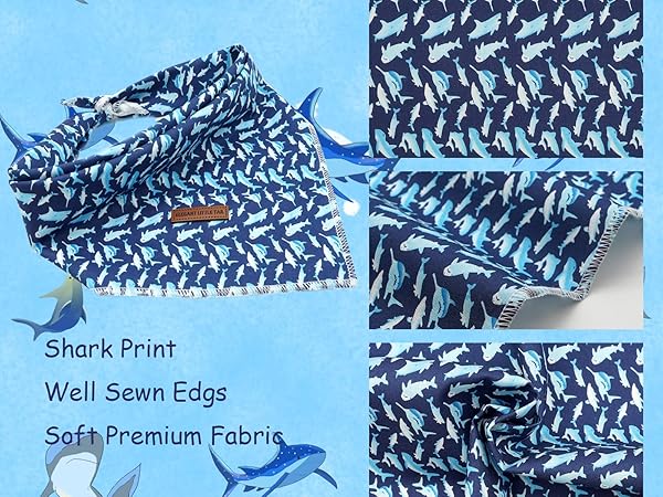 Elegant Little Tail Shark Print Dog Bandana Soft Adjustable Square Bibs for Large Dogs Perfect Birthday Gift