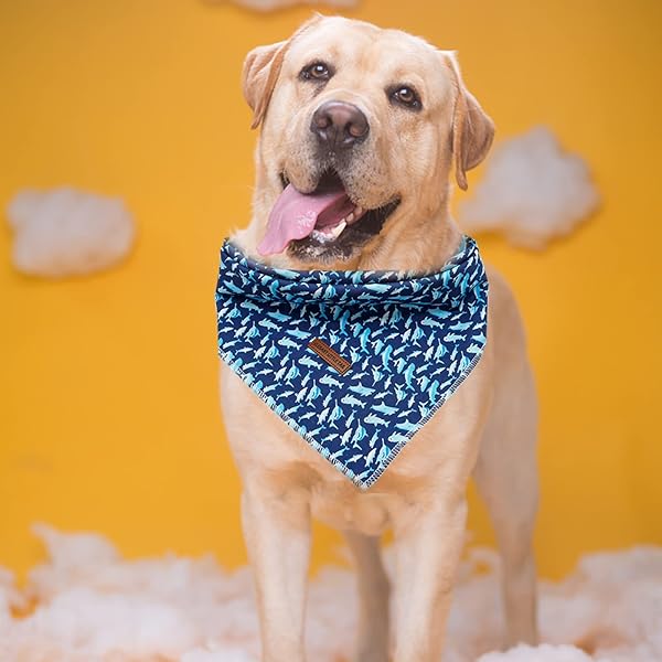 - Elegant Little Tail Dog Bandana - Shark Print Pet Birthday Gift, Boy Bibs Scarf, Soft Adjustable Square Kerchief for Large Dogs offers reliable performance and quality- SIZE - Small=23"(58cm)X16"(40.6cm)X16"(40.6cm), Large=30"(76.2cm)X21"(53.3cm)X21"(53.3cm).Please measure your dog neck before buying it