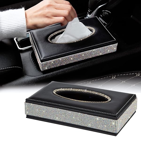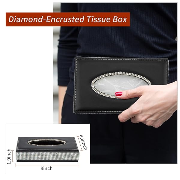 - eing Rectangle Tissue Box Cover Bling Crystal Diamonds Tissue Holder,Made by Premium Leather,Perfect for Car,Office,Home - Black offers reliable performance and quality- HIGH-GRADE MATERIAL: Surface is made of high quality PU leather and Elegant Bling Crystal Rhinestones,flannelette cloth inside.Stable structure and easy to clean- STYLISH DESIGN: A stylish and practical way to store your tissues and keep close to hand,make your desk neater and organized