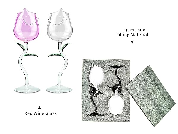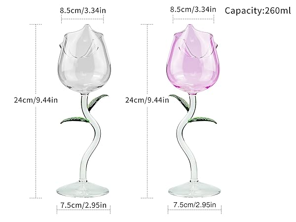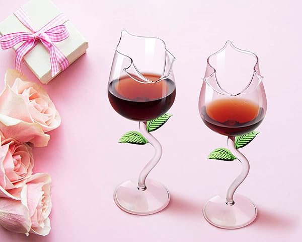 * Rose Flower Wine Glasses, Creative Red Wine Glass Set of 2 Rose Flower Goblet Wine Cocktail Juice Glass for Party Dinner Wedding Festival Kitchen Bar (260ml, 2Pcs): high-quality material: the rose wine glass is made of high borosilicate glass * 100% lead-free * Highly transparent * Glass can be recycled and reused endlessly * Exquisite design: Creative and Interesting 3D rose