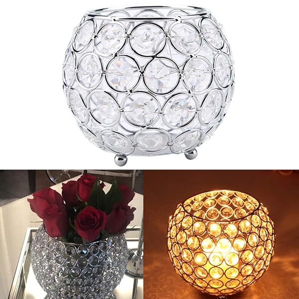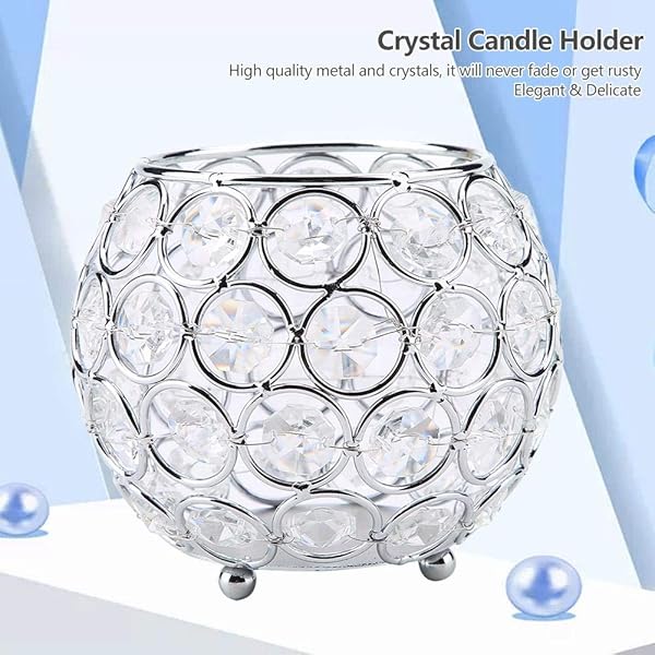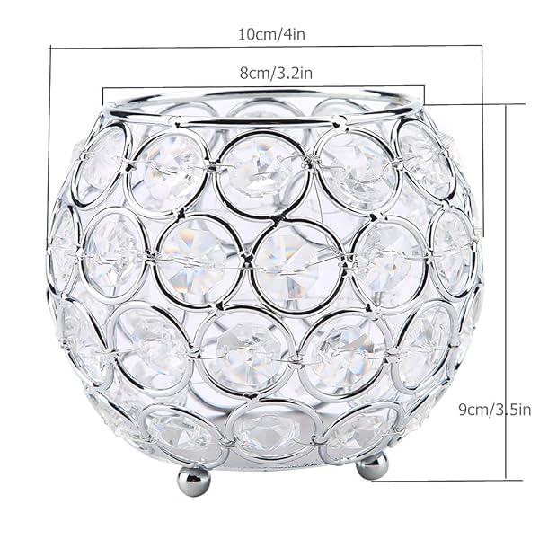 - Crystal Candle Holder Votive Tealight Candle Holders for Wedding Home Table Decor 10x10x9cm/ 3.9x3.9x3.5in (Silver) offers reliable performance and quality- Elegant Design This votive tealight candle holder is easy to add a splash of glam with the shining of the crystal jewels that surround the bowl