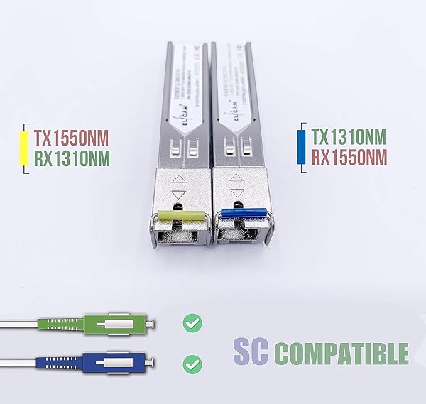 - Elfcam - 1-Piar 1.25G SFP Module Single Mode with The Fiber Optic Port SC/UPC Singlemode, DDM 10km, Compatible with Cisco et Open Switch offers reliable performance and quality- 1 pair SFP 1,25Gbs, 1000Base-BX WDM Bi-Directional SFP Module, Fiber optic cable port SC/UPC singlemode , 10km DDM. Compatible with Cisco, Huawei, TP-Link, Ubiquiti UniFi, Mikrotik, Intel, Netgear, Supermicro, Broadcom, Linksys and Open Switches