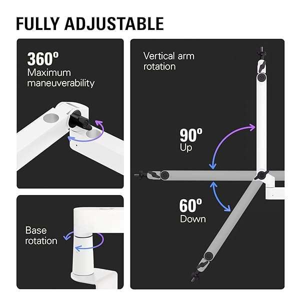 * Elgato Wave Mic Arm LP White - Premium Low Profile Microphone Arm with Cable Management, Desk Clamp, Versatile Mounting and Fully Adjustable, perfect for Podcast, Streaming, Gaming, Home Office: a studio-grade boom arm for your premium microphone * Wave Mic Arm LP sits below the shoulder line for an unobstructed view * 360-degree horizontal rotation and 90-degree vertical rotation allow maximum maneuverability * Integrated cable channels with magnetic covers keep your setup tidy * While thread