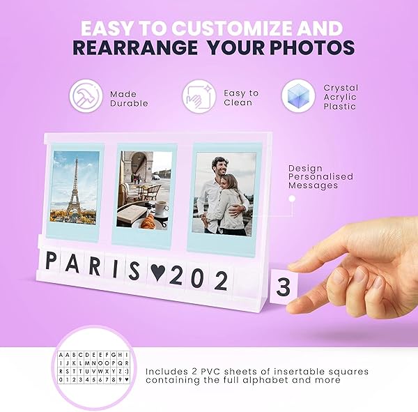 - Elil Instax Mini Photo Frame Accessories with Personalized Message Acrylic Desktop Picture Frame & Photo Display, Fits Fujifilm Instax Mini Film, Square, Wide Film for Home Office Decor and Gifts offers reliable performance and quality- Special Moments by Your Side This free-standing acrylic Instax desktop frame is made for desks, shelves, and tables, keeping your photos in sight at work or home to rejoice memories and milestones