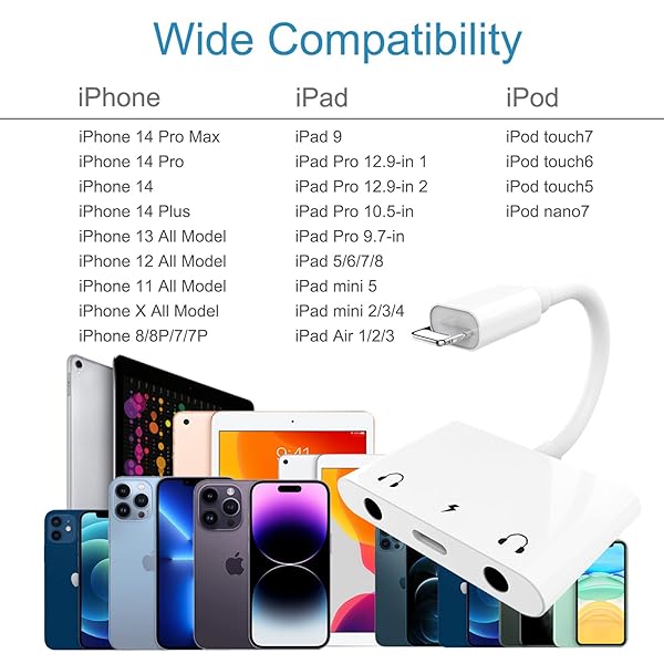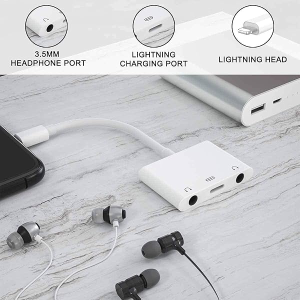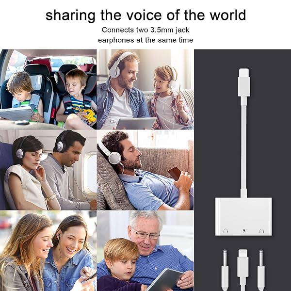 - ELITEED 3in1 Lighting to 3.5mm,Headphone Adapter for iPhone, Dual Earphone Jack Audio and Charging Adapter,Headphone Splitter for iPhone 14/13/12/11/XS Max/XR/8/7 Plus /6/ iPad,Support iOS 10 to16 ...- Dual Headset Splitter The 3 in 1 iPhone Charge and Listen Adapter supports Dual 3.5mm Headphone Jacks to work at the same time and charge,Support listen music and two person enjoy movie together.Th...