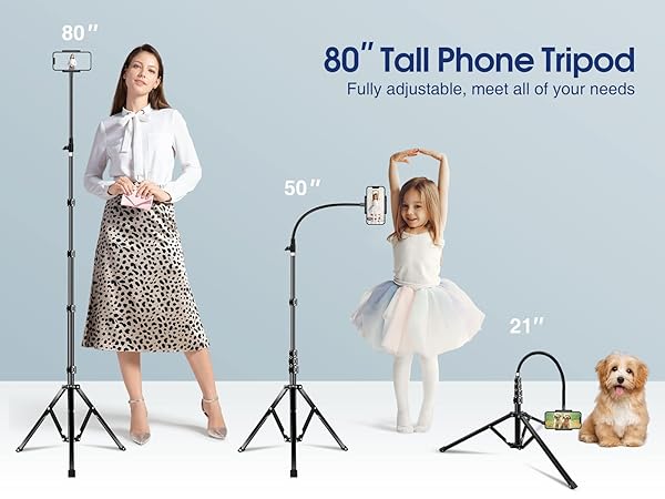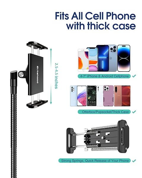 * Elitehood 6.7 Feet Tall Phone Tripod, Heavy Duty Metal iPhone Tripod Stand with Remote, 17" Gooseneck Overhead Tripod for iPhone 15 14 13 Pro Max / 13 Pro / 13 12 11, Android Cell Phone Black: more stable & flexible * Heavy duty aluminum tripod (weighted 2lbs) * 17in flexible gooseneck and 360 degree tilt rotation phone holder are combined to construct this most flexbile & tall iphone tripod stand * On the other hand * This tripod adopts the flip-locks structure