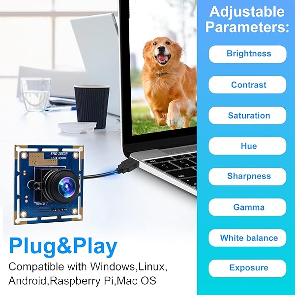 - ELP USB Security Camera Module - 1080P HD, Wide Angle, High Speed, PC Camera, Mini UVC, USB2.0, Video Webcam Board, Industrial, Lightburn, for Laptop, Jetson Nano offers reliable performance and quality- High frame rate MJPEG 120fps@640(H)X480(V), 60fps@1280(H) x 720(V), 30fps@1920(H) x 1080(V)- 2.1mm HD wide angle lens for wide view range- 2 megapixel high pixel technology for sharp image and accurate color reproduction