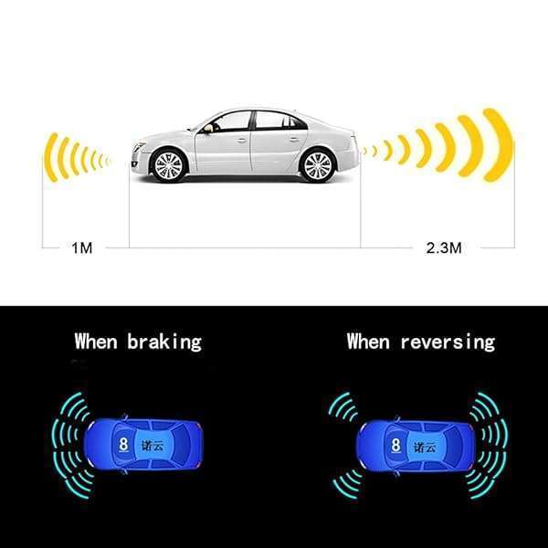 - ELSNU Backup Parktronic System Car Auto Vehicle Reverse with 8 Parking Sensors kit Distance Detection LCD Distance Display Sound Warning provides reliable performance and quality- 1: When reversing, 4 sensors at the back and 2 at the left and right corners in front of the car are activated, a total of 6 sensors to assist you in parking.