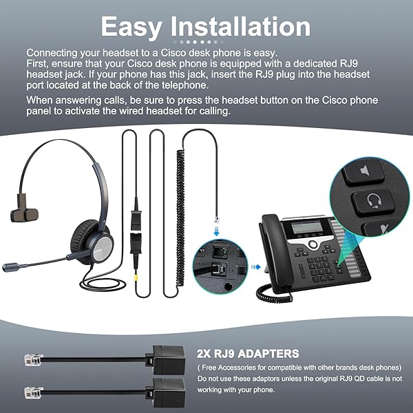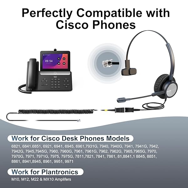 * EMAIKER Cisco Landline Phone Headset One Ear Office Wired Telephone Headset with RJ9 Jack Works for Cisco CP-7841 7931G 7940 7941G 7942G 7945G 7960 7961G 7962G 7965G 7970 8841 8851 8961 etc: compatibility perfecteddesigned exclusively for cisco ip phones with rj9/rj11 headset jacks * Compatible with various Cisco phone models: 6921 * 6941 * 6945 * 6961