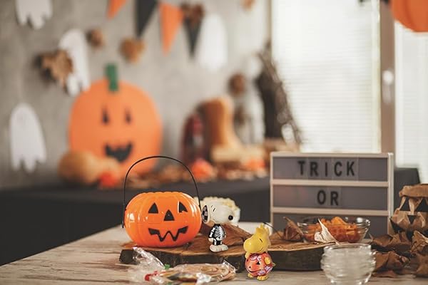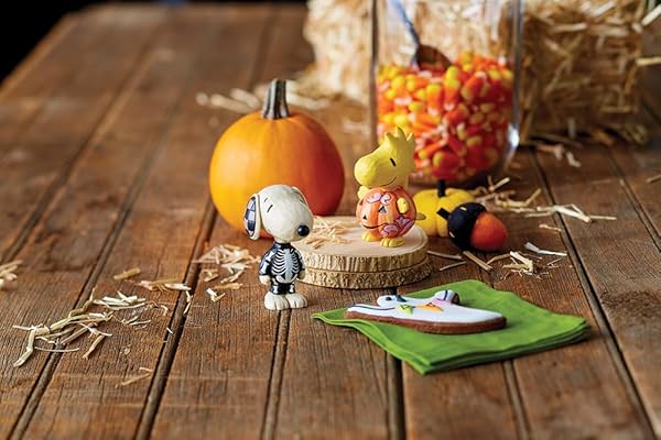 * Enesco Peanuts by Jim Shore Halloween Collection Snoopy Dressed as a Skeleton Miniature Figurine- Resin Hand Crafted Painted Collectible Peanuts Snoopy Mini Figurines Home Decor Statue, 3.25 Inch: peanuts by jim shore showcases the peanuts gang as interpreted and designed by one of america's leading folk artists * Jim Shore's collectible figurines celebrate nostalgic Peanuts moments as memorable gifts * While Charlie Brown dresses as a ghost with too many eye holes * His dog * Snoopy