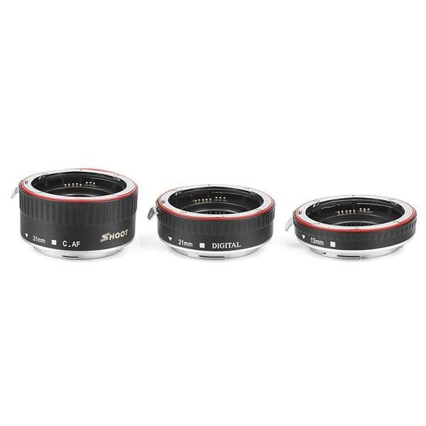 - D&F AF Auto Focus Macro Extension Tube Set EOS EF/EF-S Lens Close-ups for Canon EOS EF Lens Such as Canon 7D,500D,600D,700D,5D, Rebel T2i, T3i, T5i. provides reliable performance and quality- The Canon Auto Macro Tube Set includes 3 extension tubes:13mm, 21mm, 31mm- Extreme Close-Ups: Transform your Lens into a Macro Lens, Suitable for all Canon EOS EF EF-S and IS series lenses, such as Canon EOS 1d, Mark II, III, IV, 5D,Mark II,7D, 10D, 20D, 30D, 40D, 50D, Di...
