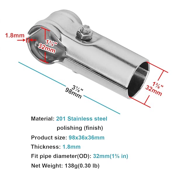 - eoere 10 Sets T Pipe Connector for 1-3/8" x 1-3/8" Fence Pipe, Chain Link Fence Clamp, Stainless Steel with reliable performance and quality- Fits 1-3/8" fence pipe to connect to another 1-3/8" fence pipe (OD 1.315")- Stainless Steel 201, Surface Polishing Finished- Clamp Thickness: 1/16", Embedding Max.Length: 1-5/8"- Package Content: 10 Sets T Pipe Clamp Connector(Bolts/Nuts Included)