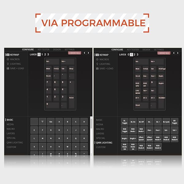 - EPOMAKER CIDOO V21 VIA Programmable Gasket Number Pad, Aluminum Numpad, Bluetooth 5.0/2.4ghz/Wired Hot Swappable Numeric Keypad, with Knob, 1000mAh Battery, Poron Foam for Laptop Mac Win with reliable performance and quality- VIA Programmable Mechanical NumpadThe VIA programmable feature allows you to customize key functions, macros, and lighting to your liking. You can remap keys, create macros, and even adjust the RGB lighting effects, all through the VIA software. This feature
