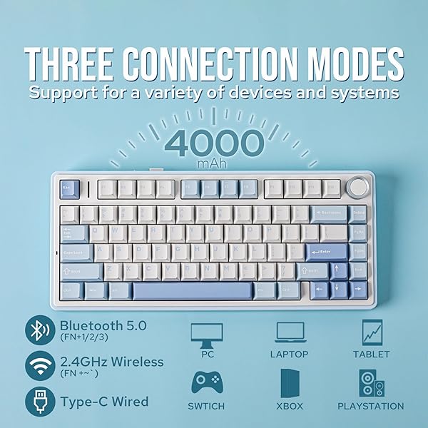 - EPOMAKER x Aula F75 Gasket Mechanical Keyboard, 75% Wireless Hot Swappable Gaming Keyboard with Five-Layer Padding&Knob, BT/2.4GHz/USB-C, RGB (Sea Salt Blue, LEOBOG Reaper Switch) with reliable performance and quality- Optimized 75% Compact Layout&Innovative Gasket StructureThe F75 redefines space efficiency with its 75% compact layout. This design integrates all the essential keys in a smaller footprint, making it perfect for streamlined desks and mobile setups without sacrificin