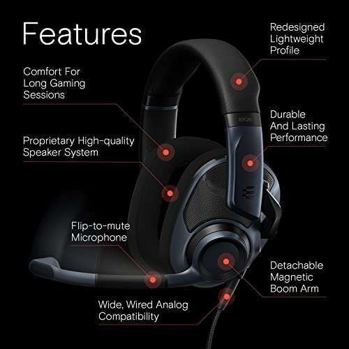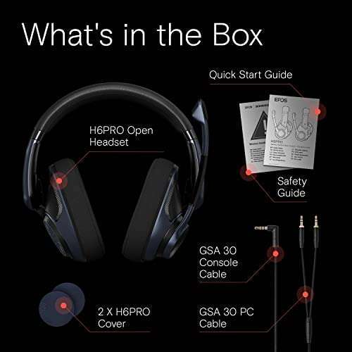 - EPOS H6Pro Open Acoustic Gaming Headset with Mic Lightweight Headband, Comfortable & Durable Design Compatible with Xbox, PS4/PS5 & PC/Windows Black provides reliable performance and quality- OPEN ACOUSTIC HEADSET DESIGN - Open ear design for more realistic in-game audio- SPEAKING NATURALLY, LISTENING NATURALLY - Hear your own voice clearly without mic monitoring- PROPRIETARY HIGH-QUALITY SPEAKER SYSTEM - Enjoy dynamic sound without compromising accuracy