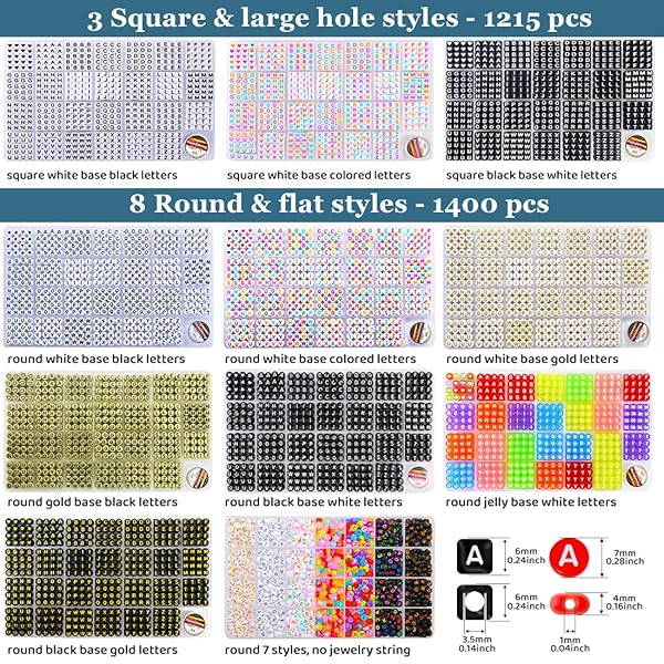 - Eppingwin 1400 pcs Letter Beads, 4x7 mm Beads, Beads for Jewelry Making, Beads for Bracelet Making, Alphabet Beads, in 28 Grid Box (7 Colors) offers reliable performance and quality- Package includes: 1400 pcs of letter beads in 7 styles which are sorted by a 28-cell grid container. * no Jewelry string- Bead size:Diameter-7mm/0.27 inch,Thickness-4mm/0.16 inch,Hole-1.2mm/0.05 inch;