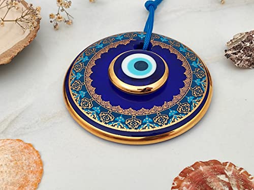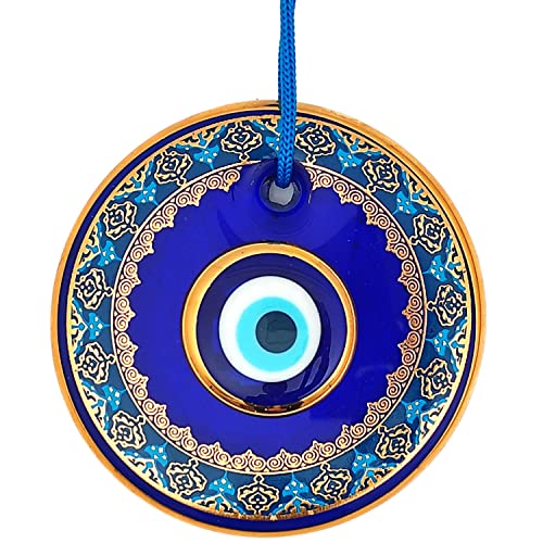 - Erbulus 4.3" Glass Blue Evil Eye Wall Hanging Gold and Turquoise Floral Design Ornament Turkish Nazar Bead - Home Protection Charm - Wall Art Amulet in a Box: reliable performance and quality- Evil Eye Warder: Evil eye bead, which is known as a- Material: The product is produced from glass. Nazar- Design: The product is designed glass evil eye bead- Size & Color: Diameter 4.3'' (11cm). Evil eye bead is