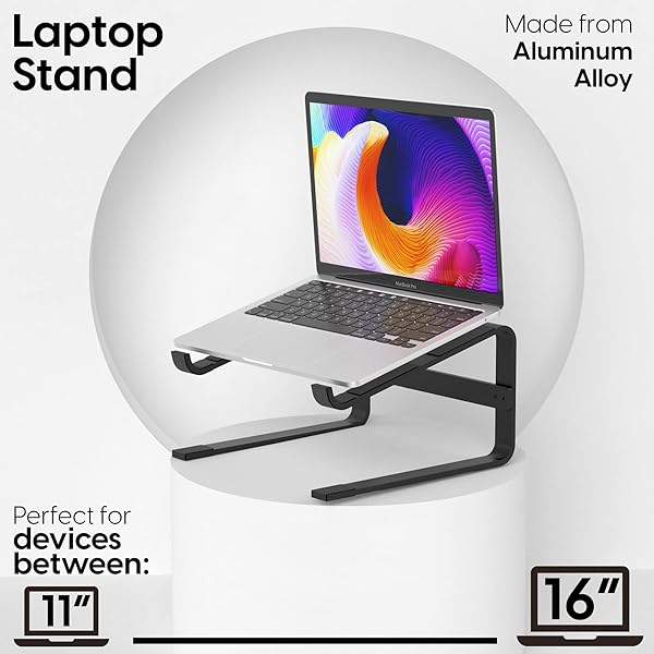 * TALK WORKS Ergonomic Laptop Stand for Desk - Universal Compatibility Computer Monitor Riser Stand Pedestal for Desktop w/ Padded Silicone Grip: the talk works laptop stand is designed to raise your laptop for better posture and a more comfortable viewing angle * It securely displays your laptop and includes silicone surfaces to protect your computer * Our laptop riser for desks is compatible with most devices and fits laptops up to 16 inches * All supporting your computer without compromising