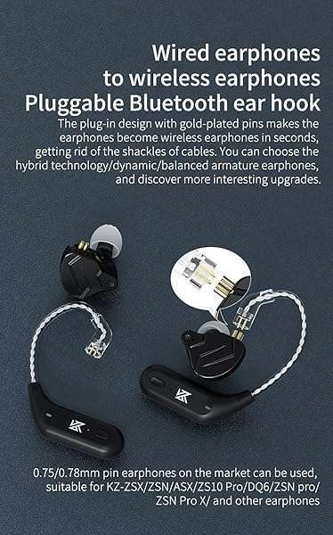 - erjigo TWS + Earbuds Hook 2Pin Connector with Mic Support/30 Hours Playback,KZ-AZ09 HD Bluetooth5.2 Ear Hook Compatible with 0.75/0.78mm Pin Earphones/Headphones/Headsets for Sports (C Pin) provide...- TWS Ear Hook with Strong CompatibilityPluggable bluetooth ear hook upgrades wired earphones to wireless earphones in seconds, getting rid of the shackles of cables. It is suitable for 0.75/0.78mm p...