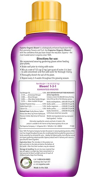 - Espoma Organic Bloom! 16-Ounce Concentrated Plant Food Plant Fertilizer and Bloom Booster for All Flowering Plants. Promotes Vigorous Growth and Blooming - Pack of 3: reliable performance and quality- FOR USE ON: Use Espoma Organic Bloom! for all- CONTAINS: This liquid concentrate contains natural- WHEN / HOW TO USE: Best to use Bloom! every 2-4 weeks- FOR ORGANIC GARDENING: Bloom! is approved for organic